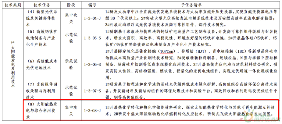 根据发布的《“十四五”能源领域科技创新规划》重点任务榜单,针对太阳能热发电与综合利用技术任务,【集中攻关】子任务清单共两项:
