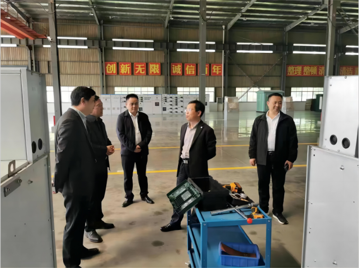 陈自才一行还赴湖北楚云电气有限公司进行调研,实地了解了我校科技成果一一新型绝缘气体环网柜的转化情况。科学技术发展研究院、电气与电子工程学院负责人陪同调研。