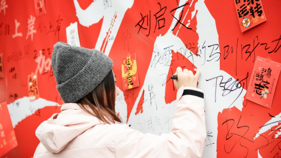 随后,陈自才及学院班子成员、班级导师及辅导员代表,向考研学生代表送上了饱含深情厚意和美好祝愿“金榜题名”上岸加油礼包,并来到学生社区考研签名墙前与学生们一同签字打卡、拍照留念,以此祝愿大家一战功成、金榜题名、梦想成真!