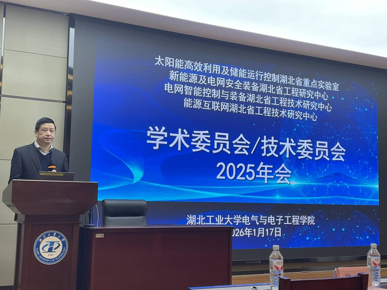 2026年1月17日,电气学院在学校召开省重点实验室及省级科研平台学术委员会、技术委员会2025年会。湖北工业大学副校长张晓星,研究生院院长、湖北省能源互联网工程技术研究中心主任武明虎,科学技术发展研究院副院长熊在琼出席会议,太阳能高效利用及储能运行控制湖北省重点实验室及省级科研平台学术委员会和技术委员会委员、特邀报告嘉宾、教师及研究生代表等参加了会议。