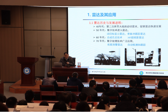 吴顺君教授长期从事信号与信息处理领域的教学和科研工作,为国家培养了一批电子信息科技人才。主要科研方向为自适应信号处理,高速实时信号处理,信号检测与估计,系统建模与仿真等。吴教授从雷达的发展及应用、隐身与反隐身、MIMO雷达、认知雷达等方面系统讲授了雷达的发展过程。吴教授解答了部分师生疑问,介绍了现代雷达信号处理在实时处理方面,在不同场合下对专用芯片和通用芯片的不同需求度。