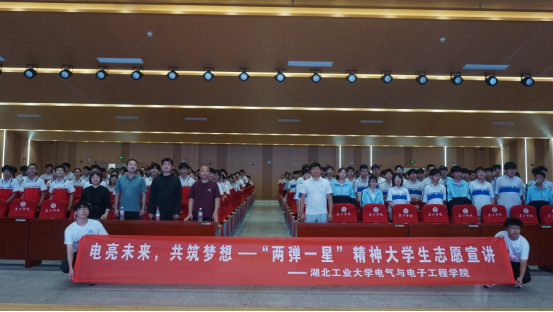 2024年5月24日,湖北工业大学电气与电子工程学院组建宣讲团队,赴襄阳参加科技周活动,先后开展“两弹一星”精神科普讲座及宣讲劳育活动。