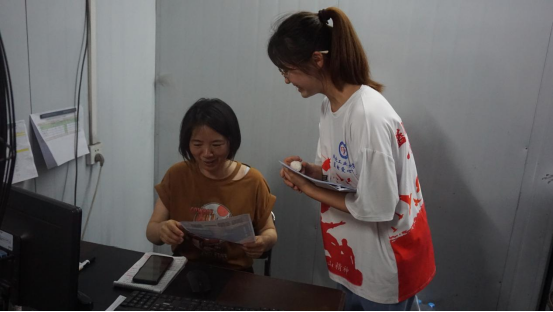 除讲座外,宣讲团队自行设计、制作“两弹一星”精神宣传页,走进企业开展“两弹一星”精神宣讲劳育活动。在湖北华磁电子科技有限公司的一线生产车间内,团队成员向勤恳的生产员工表达敬意,并通过宣传页的形式,向每一位工作人员进行“两弹一星”精神讲解、科普,在劳动中将“两弹一星”精神向大众进行普及。