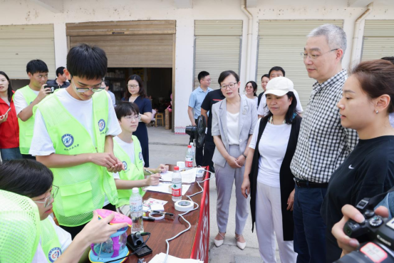 校长冯征、校党委副书记胡晓艳一行亲临现场,指导义务维修活动的开展情况。冯征亲切地慰问了志愿者们,并与志愿者们进行了深入交流。他问道,“维修过程中是否顺利,义务维修辛不辛苦?”志愿者们笑着回答道,“我们会利用专业知识尽力修好每一件电器,让每一位前来维修的居民感到满意,看到居民们脸上的笑容,听到他们的夸赞,自己就不觉得辛苦了”。在听到志愿者们的回答,了解到义务维修团队的工作内容后,冯征对义务维修团队的奉献精神以及专业知识、专业能力都给予了高度肯定,对志愿者们的专业素养和服务态度表示赞赏。